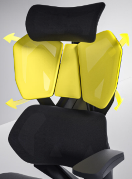 ·三区弹性椅背结构 同样通过弹性悬挂处理,让不同身材的玩家都能获得比传统皮面电竞椅更柔和、更跟随的支撑效果;
