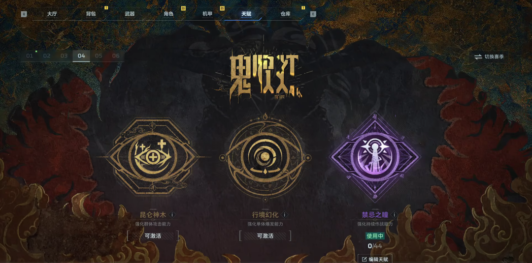先说核心养成板块之一的赛季特殊天赋,它在游戏内是个额外的特殊技能,服务于让战斗环节的体感展现出更多肉眼可见的差异。