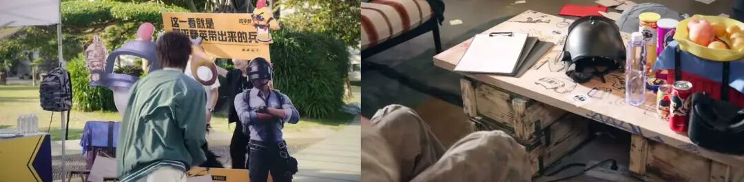 易泽所在的电竞社招募新社员用的都是“特种兵”很眼熟的打卡道具;电竞社团房间里,摆放着《和平精英》曾经推出过的薯片抱枕等周边;剧中全国高校大赛上出现的奖杯,也是现实里PEL赛事使用的真实奖杯。