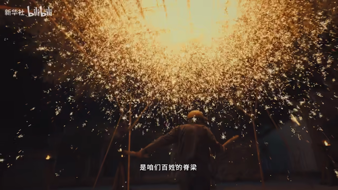 从新华社发出的纪录片来看,老师傅们口中打铁花的精神就在于“即便只有一瞬,也要璀璨绽放”,“即便眼前全是黑暗,也相信前方有光,要闯出去”。正如春晚节目的“长夜终烬,山河月明”,它和身穿甲胄的将士都是在为同一种追求而拼尽全力。